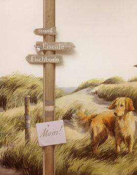 Innenraum- und Wandgestaltungen für eine komplette Großpraxis mit vielfältigen Techniken und Ideen; lebhafte und heitere Grundstimmung
